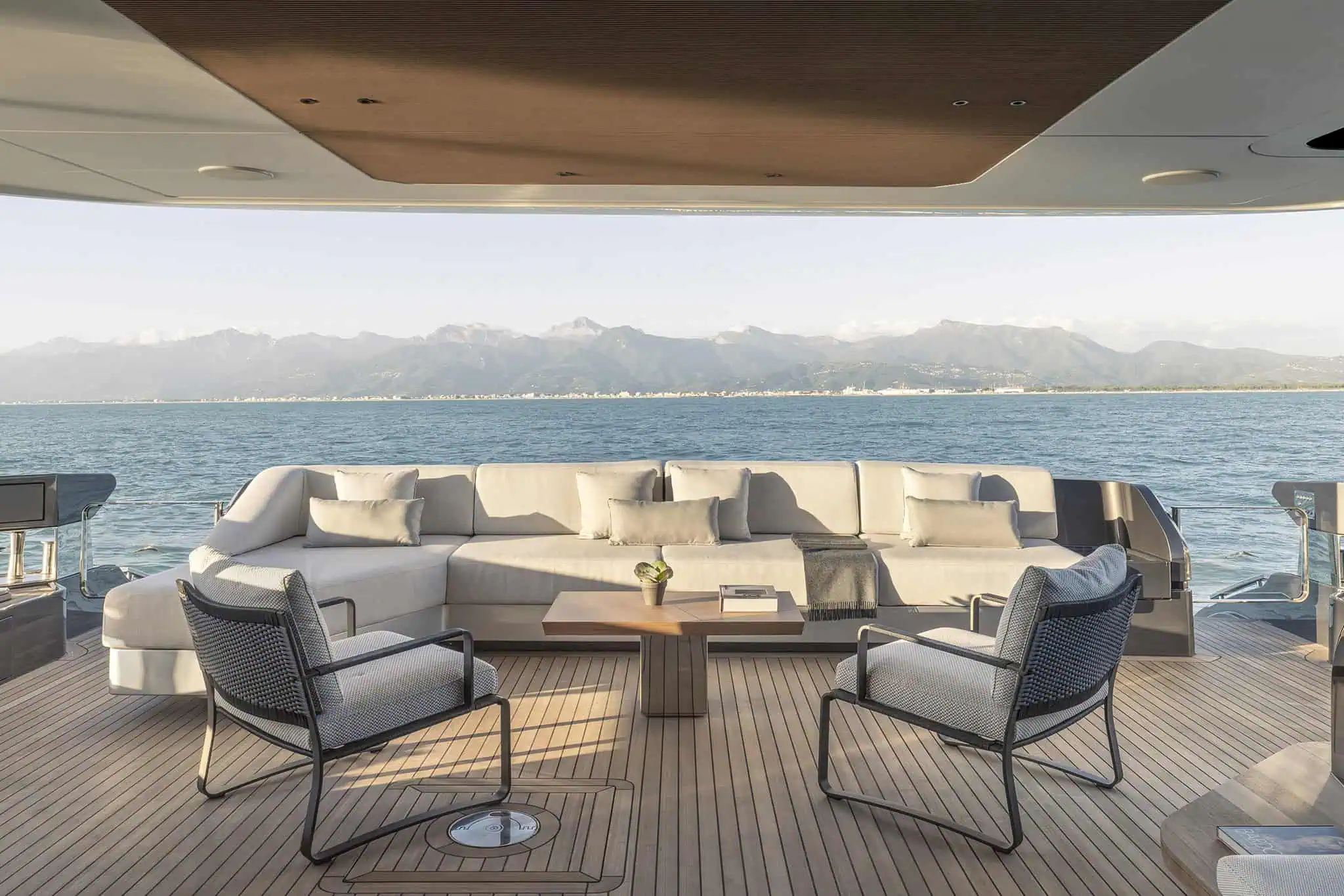 Ogni elemento contribuisce alla crezione di un continuum visivo fra spazi interni ed esterni, dall’inedito upper deck semi-walkaround che ispira la libertà di movimento alle vetrate laterali apribili che diventano un portale speciale sul mare. Un concept pensato per uno stile di vita senza barriere, che sfuma naturalmente i confini tra il piacere di stare a bordo e il fascino di perdersi nell’oceano infinito.